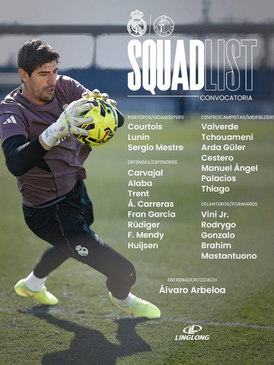 3月2日讯 本轮西甲皇马将迎战赫塔费,球队官方也公布了本场比赛大名单,其中姆巴佩、卡马文加缺席,罗德里戈、赫伊森回归。具体如下: